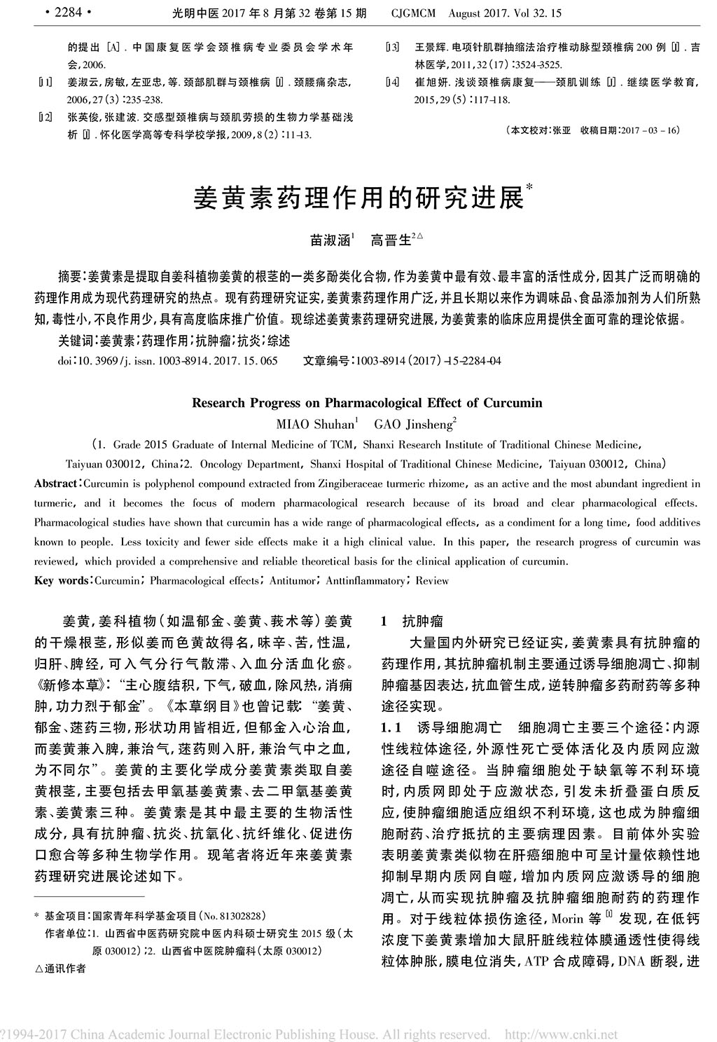 姜黃素藥理作用的研究進展_苗淑涵